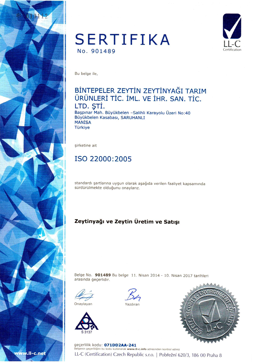 Görece Zeytin ve Zeytinyağı İşletmesi, TS EN ISO 9001:2008 ve TS EN ISO 22000:2005 şartlarına uygun bir Yönetim Sistemi (Entegre Yönetim Sistemi) oluşturmuş, dokümante etmiş, uygulamış ve sürekliliğini sağlamış olup, etkinliğini sürekli iyileştirmek için gerekli altyapıyı oluşturmuştur.